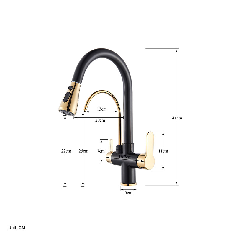 -شلنگ شاوری بیرون آورنده که با اندکی فشار از محل خود خارج و با اندکی کشش نیز به مکان اولیه خود باز می گردد.