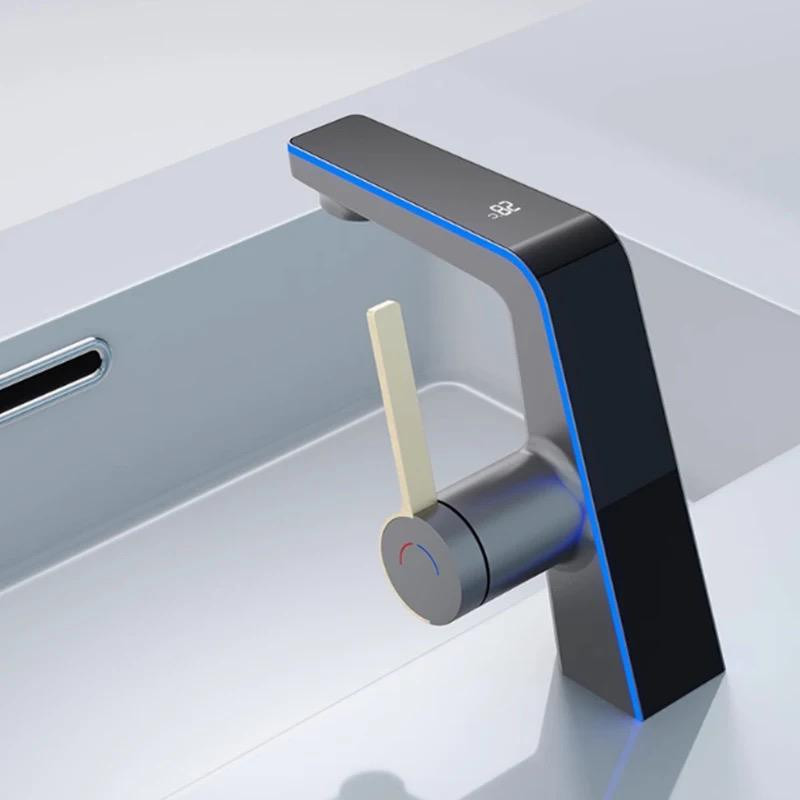 همچنین این مدل از شیر روشویی دارای نمایشگر دما میباشد که هنگام استفاده از آن دمای خروجی آب را نشان میدهد و همچنین دارای نوار ال ای دور شیر میباشد که زیبایی آن را دو چندان میکند و نیازی به برق و باتری ندارد.