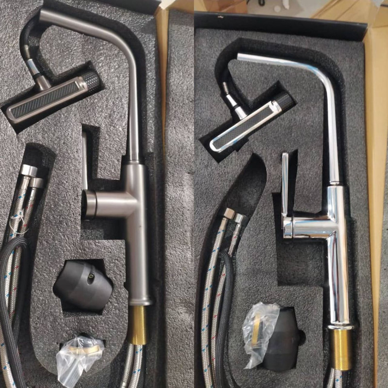 ویژگیهای شیرآلات : اهرمی , سردوش سیار , علمک چرخان 360 درجه , ضد زنگ , بدون نشتی , چرخش ۱۸۰ درجه , مقاومت بالا در برابر سایش , امکان تغییر حالت پاشش آب سردوش