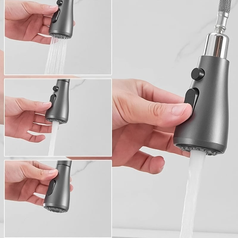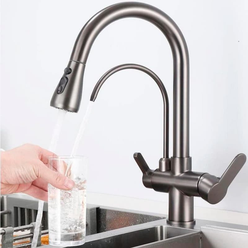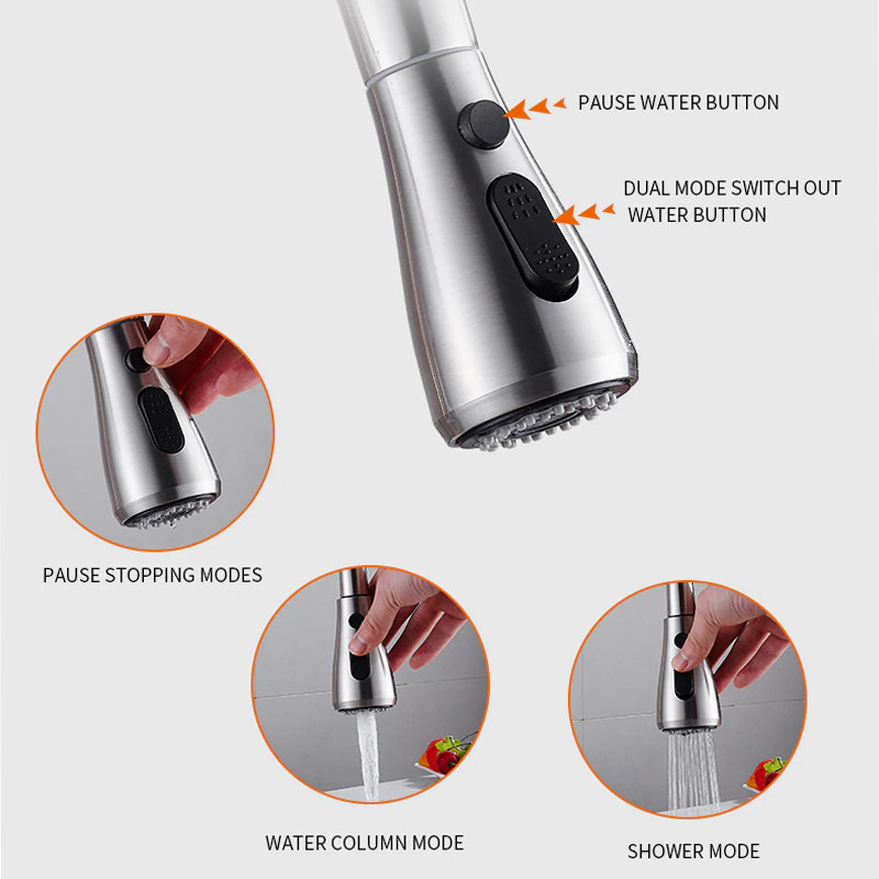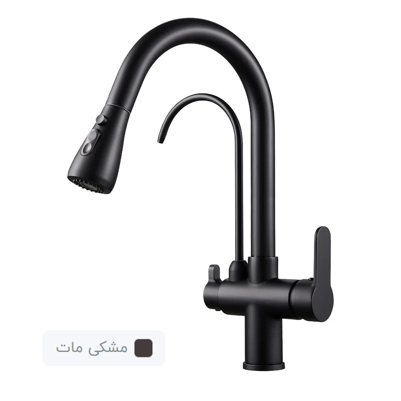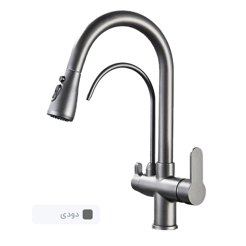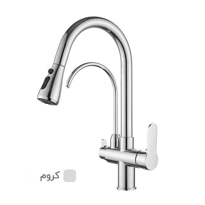 ویژگیهای شیرآلات : دارای 2 دسته , دارای آبفشان , دارای شیلنگ , علمک چرخان 360 درجه , عملگر دستی
