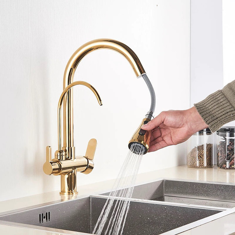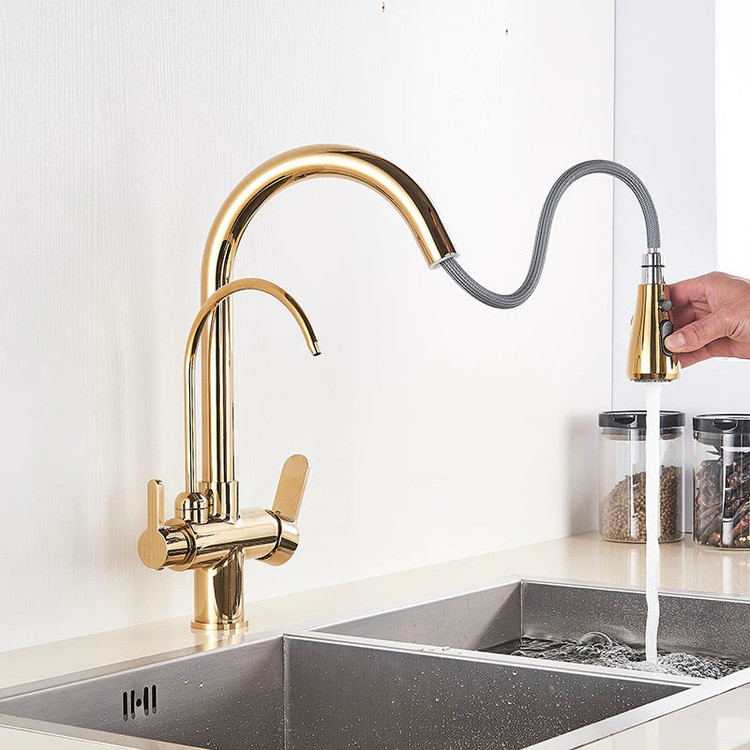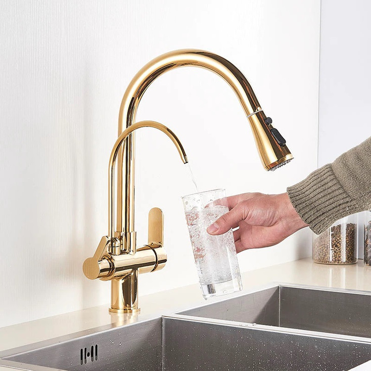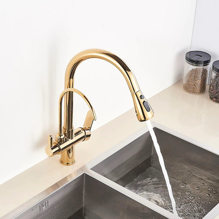 شیر آلات لوکس خارجی به لحاظ کارایی مشابه شیرآلات معمولی هستند و دارای انواع اهرمی، چرخشی، چشمی، هوشمند و .. می باشند. تفاوت مهم آنها با انواع قدیمی در کیفیت, رنگ و جنس روکش آنهاست که باعث می شود زیبایی خاص و منحصر بفرد داشته باشند. در واقع تنها کارایی و کیفیت شیرآلات نیست که امروزه مورد توجه قرار می گیرد، بلکه زیبایی آن نیز بسیار مهم است. چه بسا برای برخی از افراد نمای ظاهری مهمترین پارامتر انتخاب و خرید باشد. زیرا شیرآلات به همراه روشویی و کابینت جز لوازم دکوراتیو سرویس بهداشتی هستند که در نگاه اول به چشم می آیند.شیر آشپزخانه مدل لوکس تصفیه دار دارای خروجی مجزا جهت تصفیه و شیلنگ شاوری بیرون اورنده برای دسترسی به نقاط مختلف سینک و ظروف می باشد
